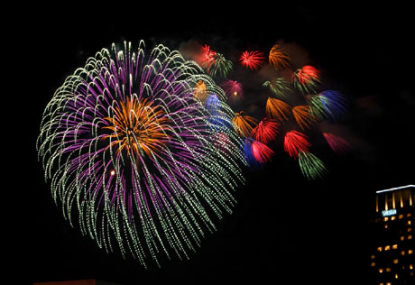 花火を「瞬間」で撮影するのは難しいもの。光が尾を引くような撮影には、ちょっとした準備と撮影のコツが必要。 |