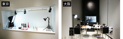 ミニスタジオ撮影体験コーナーでは、お気に入りのカメラとレンズでおしゃれな被写体を自由に撮っていただけます。