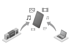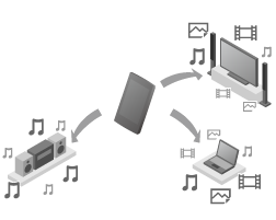 “ウォークマン”をホームネットワークに接続して、他のDLNA対応機器(サーバー)のコンテンツを“ウォークマン”で再生したり、“ウォークマン”のコンテンツを他のDLNA対応機器(再生機器)で再生することができます。