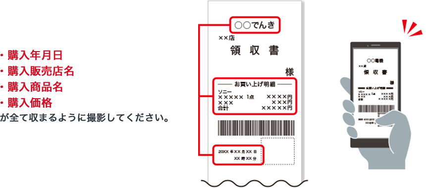 - はい、購入日・購入店名・製品名・金額が記載されていれば申し込めます。