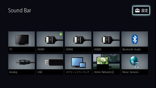 [1] リモコンの「ホーム」ボタンを押して、ホームメニューを表示させる。