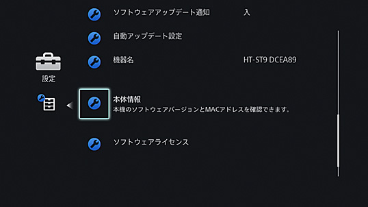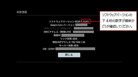 [5] ソフトウェアバージョンを確認してください。(ソフトウェアバージョンの下4桁の数字が最新でない場合、ソフトウェアアップデートが必要になります。)