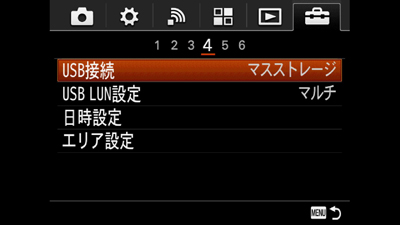 「マスストレージ」以外の設定になっている場合は、「マスストレージ」に設定してください。