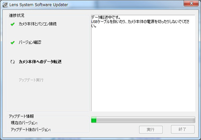 - アップデート中は絶対にカメラ本体の電源を切ったり、USB接続を外さないでください。