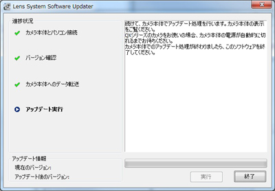 ダウンロードしたファイルをダブルクリックするとLens System Software Updaterが起動します。