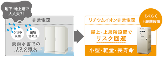屋上・上層階設置で豪雨水害でのリスクを回避