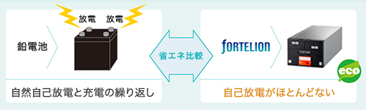 リチウムイオン電池出力がフラットで安定しているため、負荷電圧補償装置(SID)を削減できます。また鉛電池に比べ自己放電をほとんどしないため、省エネ化が可能です。