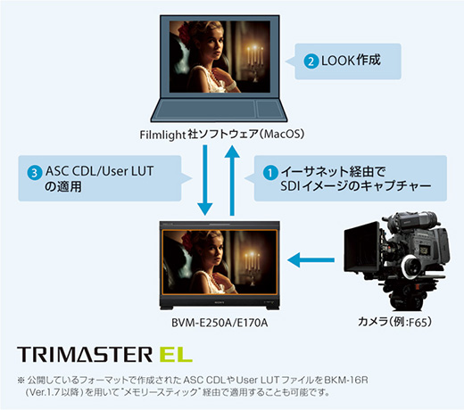 デジタルシネマ、テレビドラマ、CMなどの映像制作においてASC CDL(American Society of Cinematographers Color Decision List)機能やUser LUT(Look Up Table)を使用してモニターの色表現を変えることができます。