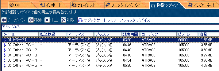 削除しようとすると、トラックAはPCにチェックインされる形でメディア上から削除されるため、音楽コンテンツの再生権利は失われません。