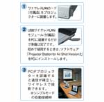 PCからのデータをワイヤレスで受信する“Air Shot Version 2”を搭載しています。プレゼンターはプロジェクターの近くにいる必要が無く、PCを持って室内を歩き回ることもできます。また複数の人がプレゼンテーションする場合もスムーズに他のPCに切り換えることができます。バージョンアップにより、さらにスピーディー・高セキュリティーになりました。