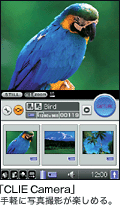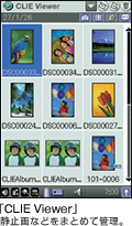 「クリエ」やサイバーショットなどで撮ったデジタル写真を表示できます。拡大することができ、一覧表示で管理もスムーズ。メール添付なども可能。「クリエ」なら、たくさんの写真をコンパクトにモバイルできます。