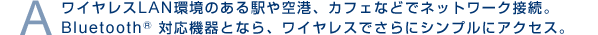 Bluetooth(R)対応の携帯電話やPHSがあれば、屋外でもダイレクトにダイヤルアップ接続が可能です。また、Bluetooth(R)機能を搭載した「クリエ」やバイオとの間で、ワイヤレスでのHotSyncや、画像やアドレス情報の交換ができます。Bluetooth(R)を活用すれば、ワイヤレス環境がより充実。データ交換などがさらにシンプルに行えます。