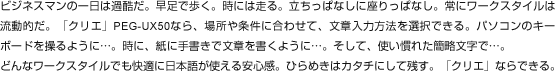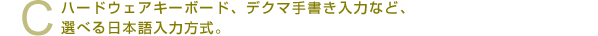 PEG-UX50は、漢字手書き入力を実現する「デクマ手書き入力」を搭載。どなたでもすぐにペン操作での文字入力をお使いいただけます。