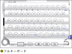 PEG-UX50が装備するハードウェアキーボードは、数字キーも備えたフルキーボードです。パソコン感覚での素早い入力が可能で、長文の入力に威力を発揮します。