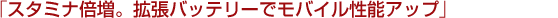 「クリエ」のモバイル性能は、専用の周辺機器でさらにアップします。大容量の拡張バッテリーだけでなく、車内でも充電できるカーバッテリーアダプ