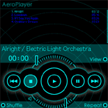 MP3形式のファイルが入ったメモリースティックを入れ、「クリエランチャー」や「アプリ起動」など、ソフトウェアのアイコンが並ぶ画面の中から、「AeroPlayer」のアイコンをタップして、再生ソフト「AeroPlayer」を起動します。再生ボタンをタップ(または、ジョグダイヤルをプッシュ)で音楽の再生が始まります。(図6)