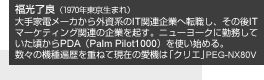 私はこれまで、さまざまなPDAを使ってきました。その主な目的は、予定表やアドレス帳などの個人情報管理です。私の会社では、社内でスケジュールを互いに共有してOutlookで管理しているんですが、この予定はパソコンがないと確認できません。外出することの多い私にとって、これはとても不便でした。そこで、この予定をどうにか外に持ち出せないかと思い、いろいろとPDAを使ってみました。しかしどれもパソコンとの連携がシンプルではなく、思ったように簡単に連携できなかったんですよ。