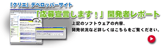 | 自分が考えていたイメージに一番近かったので、採用させていただきました。他の作品も、中々の物だったので、結構悩んだのですが…… アイコンに負けないプログラムしなければと、プレッシャーを感じています。実現したいアイデアは色々あるのですが、期日も迫ってきていますので、出来る限りがんばりたいと思います。 |