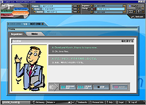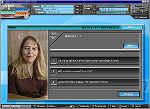 『イー・イングリッシュ・ジム』は、ブロードバンドネットワークの大容量、双方向通信という特長を生かし、映像・音声・文字を活用した実際の会話シーンをPC上で擬似的に再現します。