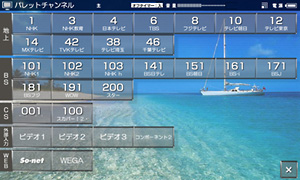 大画面プラズマディスプレイとパレットディスプレイ上で視聴可能なチャンネル、外部AV機器、インターネットのお気に入りホームページ※2の一発選局が可能なチャンネルリストを搭載。パレットディスプレイ用のチャンネルリストは透過型のデザインを採用しているため、番組を確認しながら選局することが可能です。