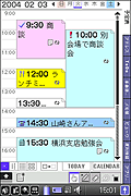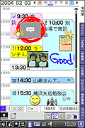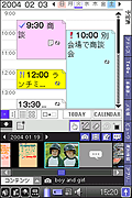 予定表の画面の下に、その日に書いた手書きメモ、内蔵カメラで撮影した静止画、録音した音声などが リスト表示され、それをドラッグ&ドロップするだけで簡単に付箋紙のように予定表の上に貼付出来ます。