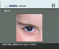 赤目補正機能 |  | 夜間や室内での撮影で赤目になってしまった写真も、テレビにつなげば、パソコンのソフトを使わずに、プリンターから簡単に補正することができます。 |  |  | | 「赤目の補正」を選択 → 赤目部分にフォーカスをあて、実行 | 補正完了* | *画像が全体的に暗い場合など、条件によっては赤目補正がきかない場合があります。 |