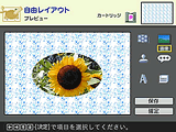 画像加工・編集機能「クリエイティブプリント」が拡張 よリ楽しく |  | テレビにつないで、撮った画像を加工して、簡単にオリジナルの写真プリントが可能。 壁紙・文字入力・スタンプなどを組みあわせた自由レイアウトや、写真に特殊効果をつけたカードやカレンダーなどのテンプレートを利用して、オリジナル写真をつくることも可能です。 【自由レイアウト】壁紙(20種類),