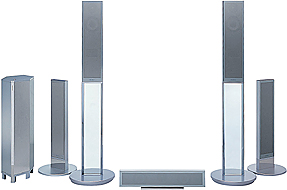 合計6本のサラウンドスピーカーシステムを使用し、ハリウッドのダビングシアターで実際に行われているスピーカー配置を家庭で再現することが可能です。フロントとサラウンド、サラウンドとサラウンドバックの音のつながりが良くなるほか、映画館ではよく経験できる天井方向に配置された音も再現可能です。また複数のスピーカーで同じ音を分担して再生するため比較的小型のサラウンドスピーカーをサラウンドスピーカーに使用しても迫力のある音が得られます。 |