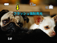 ・フラッシュ撮影やセルフタイマーなどの設定時、本体操作十字キーを押した際、液晶画面にアイコンと同時にアイコン説明も文字で表示します。 |