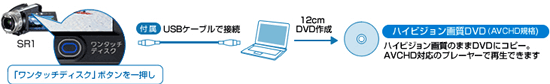 DVD+R DL(ダブルレイヤー)ディスク使用時には、最長約1時間*2のハイビジョン撮影が可能。*3 |