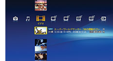 ソニー独自のGUI (グラフィカルユーザーインターフェース)、“XMB”(クロスメディアバー)により、画面上に並んだアイコンや録画されたタイトルをヨコ・タテに高速スクロール。決定ボタンで選ぶだけで、再生や選局などの操作が簡単・スピーディーに行えます。