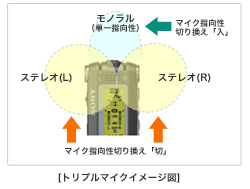指向性切り換えスイッチの「入/切」により、用途に適した集音が可能です。