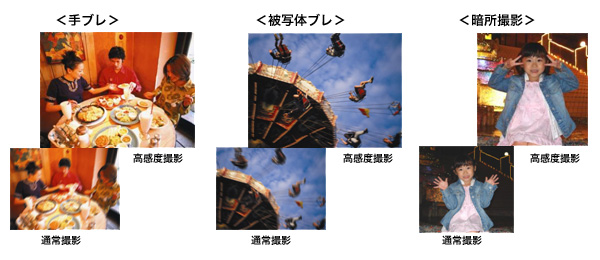 揺れで起こる「手ブレ」や被写体が動くことで発生する「被写体ブレ」を抑えるとともに、夜景や薄暗い室内でもフラッシュを使用することなく背景までも自然な雰囲気で鮮やかに撮影することができます。※3