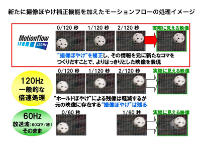 “モーションフロー”は本年5月発売のJ5000シリーズに既に搭載済みですが、IBリダクション機能の搭載、および“モーションフロー”のフルHDパネル搭載機種への採用は今回が初めてとなります。