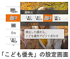 して撮影する「こども優先」、「大人」の笑顔を優先して撮影する