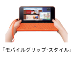 機能としては、持ち運んだ先での快適な操作性の実現のため、立ったままでもお使いいただけるよう液晶の両脇に設置したタッチパッドやクリックボタンによる「モバイルグリップ・スタイル」を提案。さらに、本体に内蔵した各種センサーの採用によるWeb閲覧のための便利な操作性の実現や、デジタルコンパスや地図情報などと連携し、外出先での最寄りの飲食店情報を簡単に参照することができるなど、アクティブに使用するための利便性も備えています。