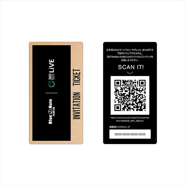 本商品を購入した方全員に、「BLUE NOTE TOKYO」のロゴが入ったオリジナルパッケージ(*4)に、シリアルナンバー入りのオリジナルレザーコースター(*5)と360 Reality Audio Liveスペシャルコンテンツ視聴用のシリアルコード付きチケット(*6)を同梱します。360 Reality Audio Liveは、360 Reality Audioによるライブコンテンツを楽しむためのアプリで、ソニーの360立体音響技術を活用し、立体的な音と映像で、まるでライブ会場にいるかのようなリアリティと臨場感が体験できます。 チケットのシリアルコードをスマートフォンやタブレット等のモバイル機器で読み込み必要情報を入力することで、BLUE NOTE TOKYO音響エンジニアチーム監修による360 Reality Audio Liveスペシャルコンテンツを体験できます。『WH-1000XM5』のノイズキャンセリング性能と高音質による圧倒的な没入感で「BLUE NOTE TOKYO」の極上の音楽体験を自宅で再現します。ライブ収録楽曲は「Blue Horizon」、「Sky Dance」、「Izumi Medley」の計3曲です。
