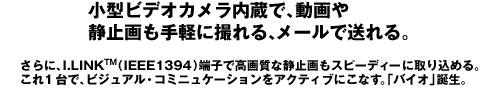 *1 56kbpsはデータ受信時の理論値です。データ送信時は規格上33.6kbpsが最大値になります。V.90仕様へのアップグレードに対応予定。 *2 バッテリー使用時間は、バッテリーパック(S)(本体に付属)/バッテリーパック(L)(別 売)。いずれも省電力モード時の目安です。 使用状況や設定などにより上記記載時間と異なる場合があります。また、バッテリーパック(S)とバッテリーパック(L)の併用はできません。 ●オープン価格の商品は希望小売価格を定めていません。●画面 はハメコミ合成です。