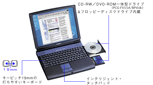PCG-FX77/BP・FX55/BPに搭載。PCG-FX55A/BPはCD-RW/DVD-ROM一体型ドライブ、PCG-FX11/BPはDVD-ROMドライブを搭載。