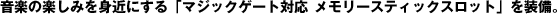 | 薄くてコンパクトなIC記録メディア「メモリースティック」を直接差し込んで使えるスロットを装備しています。著作権保護技術対応「マジックゲート