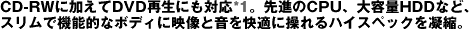 IIIプロセッサー850MHz*2、大容量約30GBハードディスクドライブ*3に加え、新たにCD-RW/DVD-ROM一体型ドライブを搭載*1。オリジナルCDの作成、DVDソフトの鑑賞など映像と音の楽しみがますますパワーアップしました。