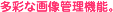 欲しいファイルをすばやく探せるブラウズ機能、画像の種類、サイズ、撮影日などの検索機能が充実。 |