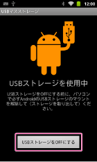 “ウォークマン”の画面に表示されている[USBストレージをOFFにする]をタップする。