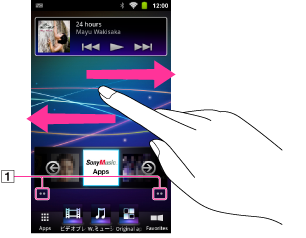 現在どのホーム画面を表示しているかは、左右のインジケータで確認できます。