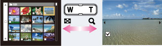 一覧表示、1枚再生を切り換えながら選ぶには一覧表示時にW/T(ズーム)ボタンT側の