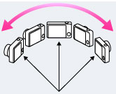 [撮影方向]で[右]または[左]を選びます。[360度]のスイングパノラマ撮影時は、[撮影方向]で上下方向を選べません。