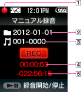 残り録音可能時間は、実際よりわずかに短く表示される場合があります。また、1,000時間を越える場合は表示されません。