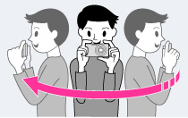 体を軸に、カメラを一定の速度でゆっくり回す(半周5秒が目安です)。速すぎたり遅すぎたりするときは、画面にメッセージが表示されます。