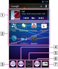 ホーム画面には、アプリケーションのウィジェットやショートカット、フォルダーなどを表示します。ホーム画面は5画面あり、左右にフリックして切り替えることができます。