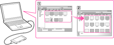 Windowsのエクスプローラーを使って、ドラッグアンドドロップで“ウォークマン”に曲やビデオ、写真を転送できます。